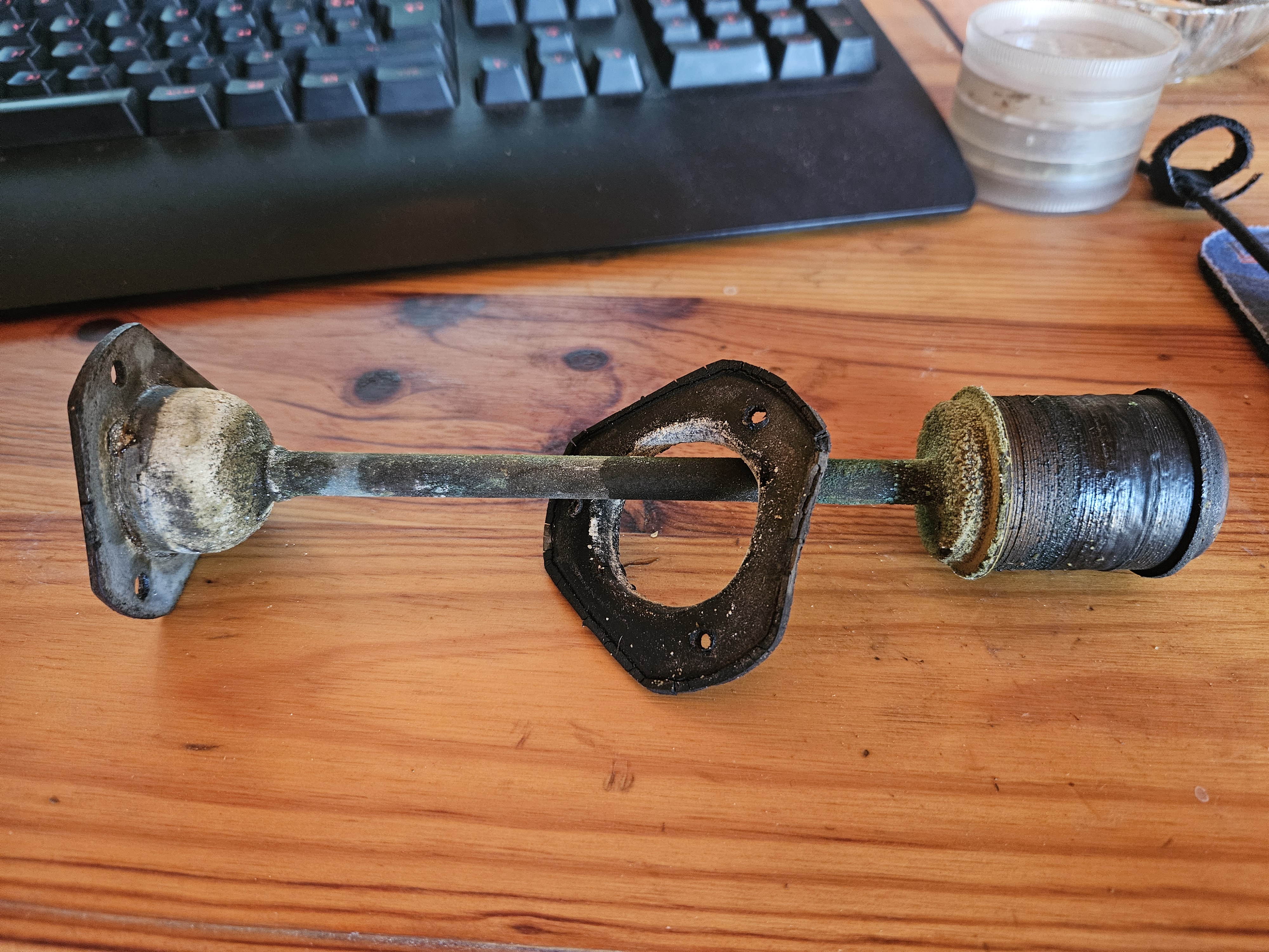Par contre, petite question que je me suis posée au moment de sortir le réservoir : j'entendais un truc bouger à l'intérieur. Après quelques galères, j'ai réussi à sortir la pièce des photos 3 et 4. Je ne sais pas du tout ce qu'est cette pièce, où va-t-elle et que faisait-elle détachée dans le réservoir
