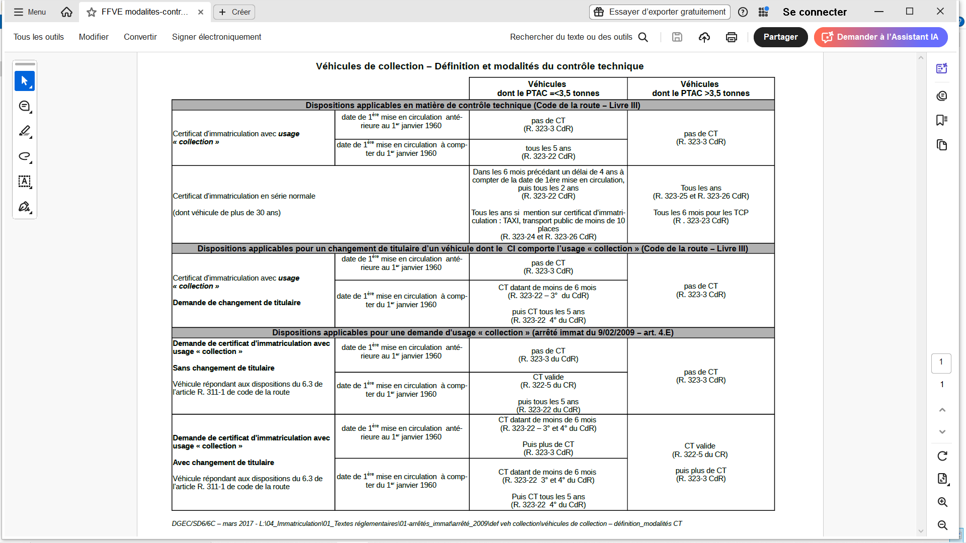 Est-ce que l'ANTS demande systématiquement une attestation FFVE ou une attestation de date chez l'Aventure Peugeot Citroën pour faire sauter la contrainte du CT? et de ce fait met la mention de véhicule de collection sur la CG ?