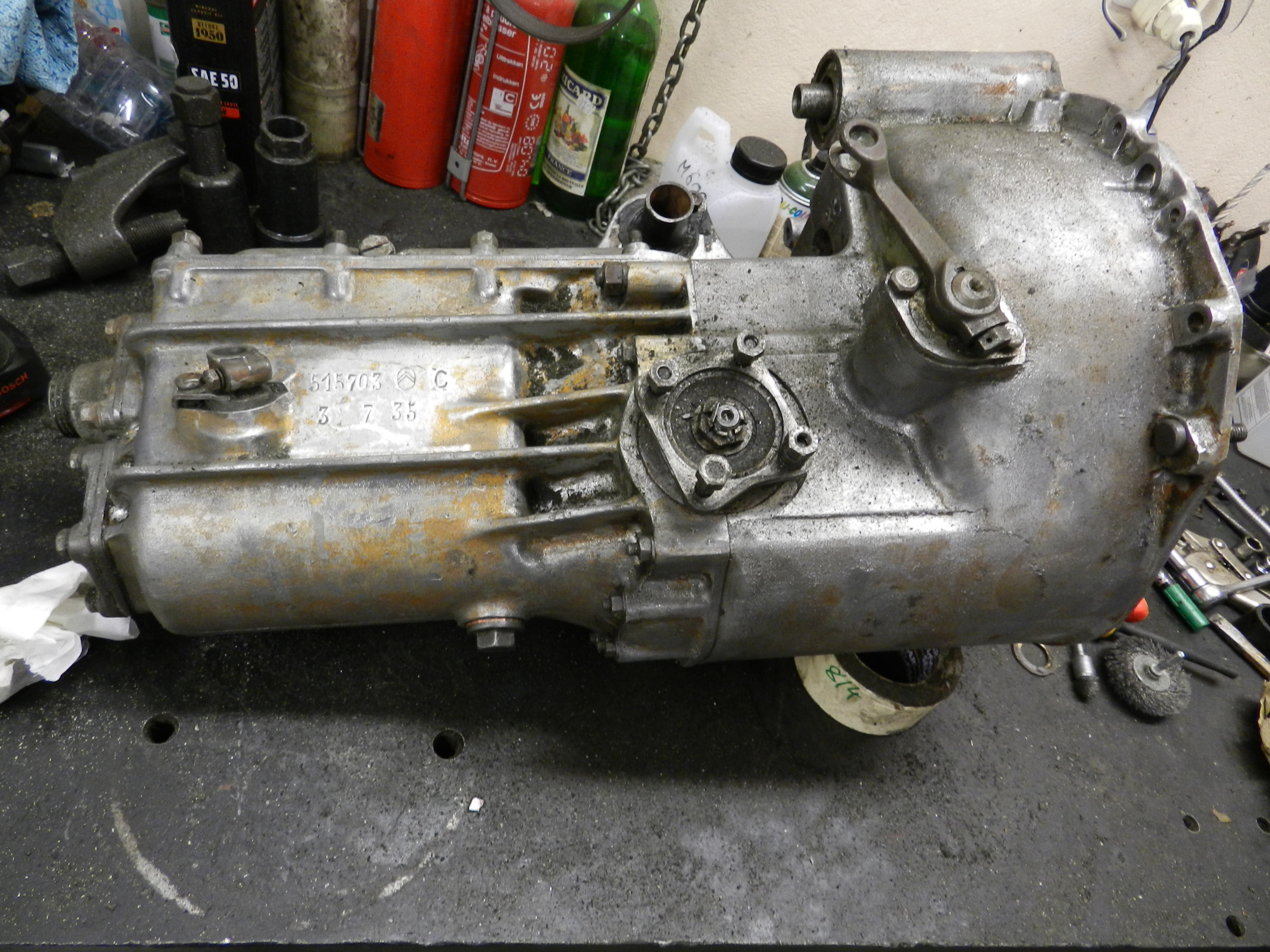 Pour le reste, on voit qu'il s'agir d'une boite pour montage Pausodyne 1e disposition, le silentbloc est spécifique à ce montage. Le couvercle avant à 4 ou 5 vis, la perspective est trompeuse.