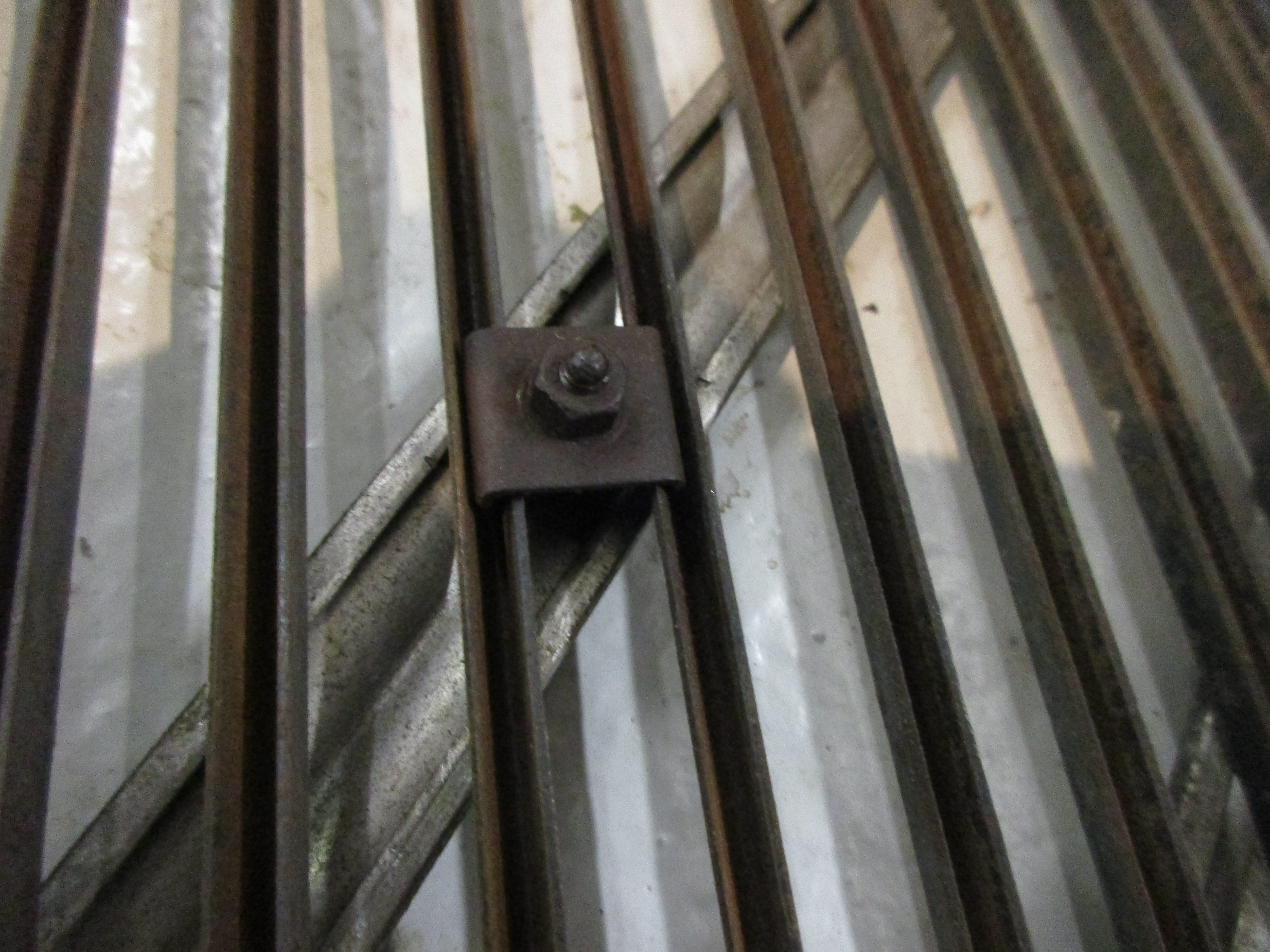 Démontage: déposer les quatre plaquettes en U qui bloquent les chevrons en partie centrale, déplier uniquement les languettes basses des chevrons, à 90°, ne pas toucher aux languettes hautes, il suffit de faire pivoter le chevron en le dégageant depuis le bas.