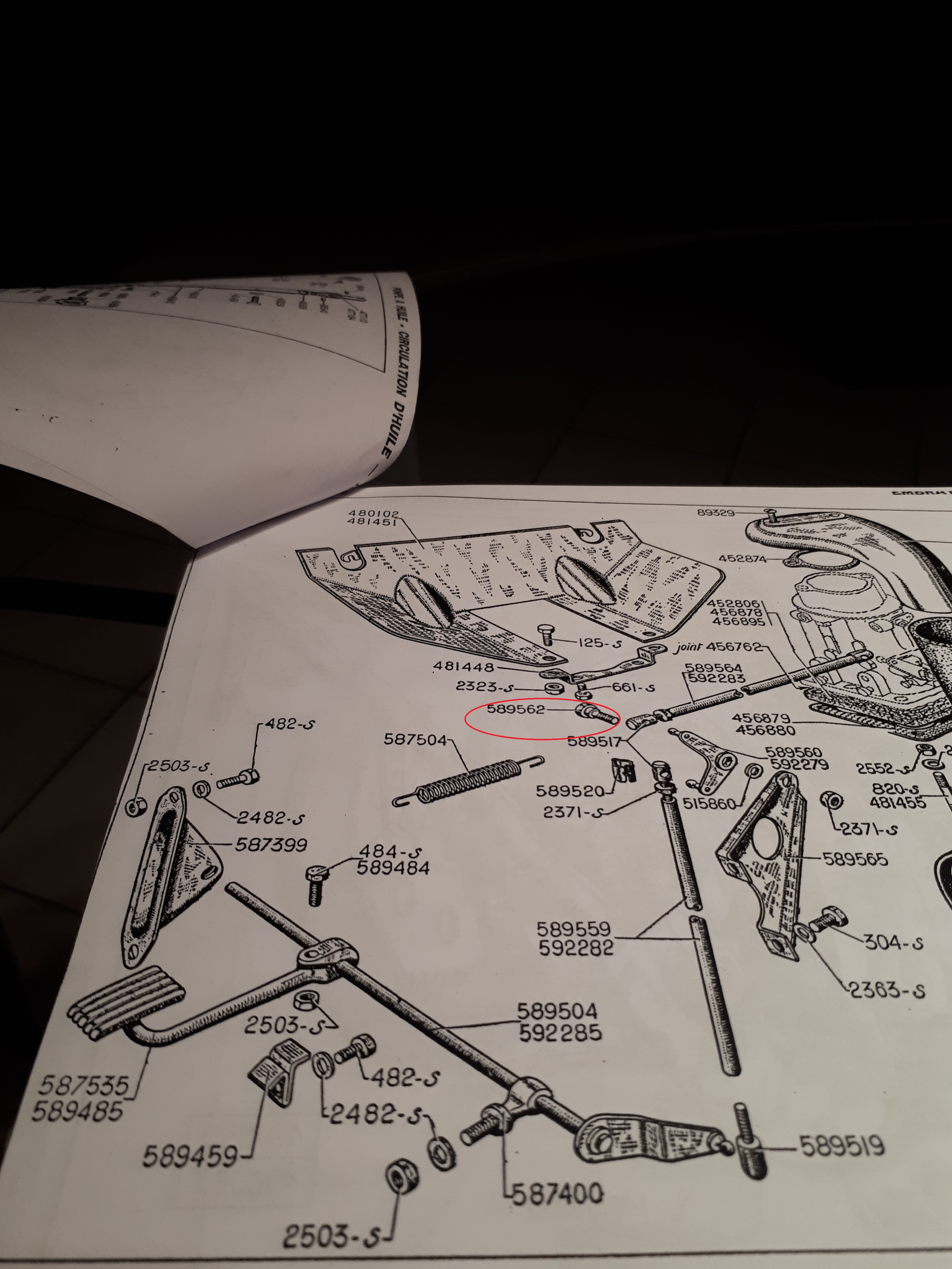 Je suis à la recherche d'une vis épaulée (référence Citroën 589562, voir sur document joint). Cette vis est utilisée sur ma 15 dans la tringlerie entre l'accélérateur et le carburateur au niveau du tablier. L'actuelle a le filetage foiré, ce qui empêche un bon serrage et provoque un point dur au niveau de la pédale. Avec mon fils nous avons avons fait un bricolage de fortune en attendant de trouver la perle rare. En effet j'ai contacté plusieurs revendeurs de pièces de Traction et aucun n'a cette pièce en stock, en neuf ou en occasion.