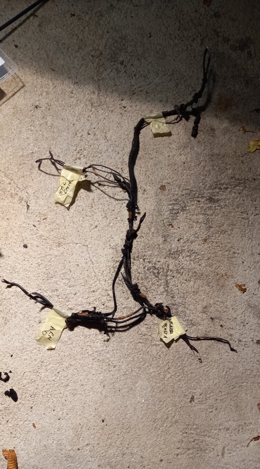 Le câblage de la partie arrière est resté ancien. Pour y accéder, il faudrait que je déchire toute la couverture du toit, ce qui ne sent pas bon pour moi. De plus, les fils à l'arrière étaient en bien meilleur état, probablement parce qu'il y a moins de fluctuations de température que dans le compartiment moteur.