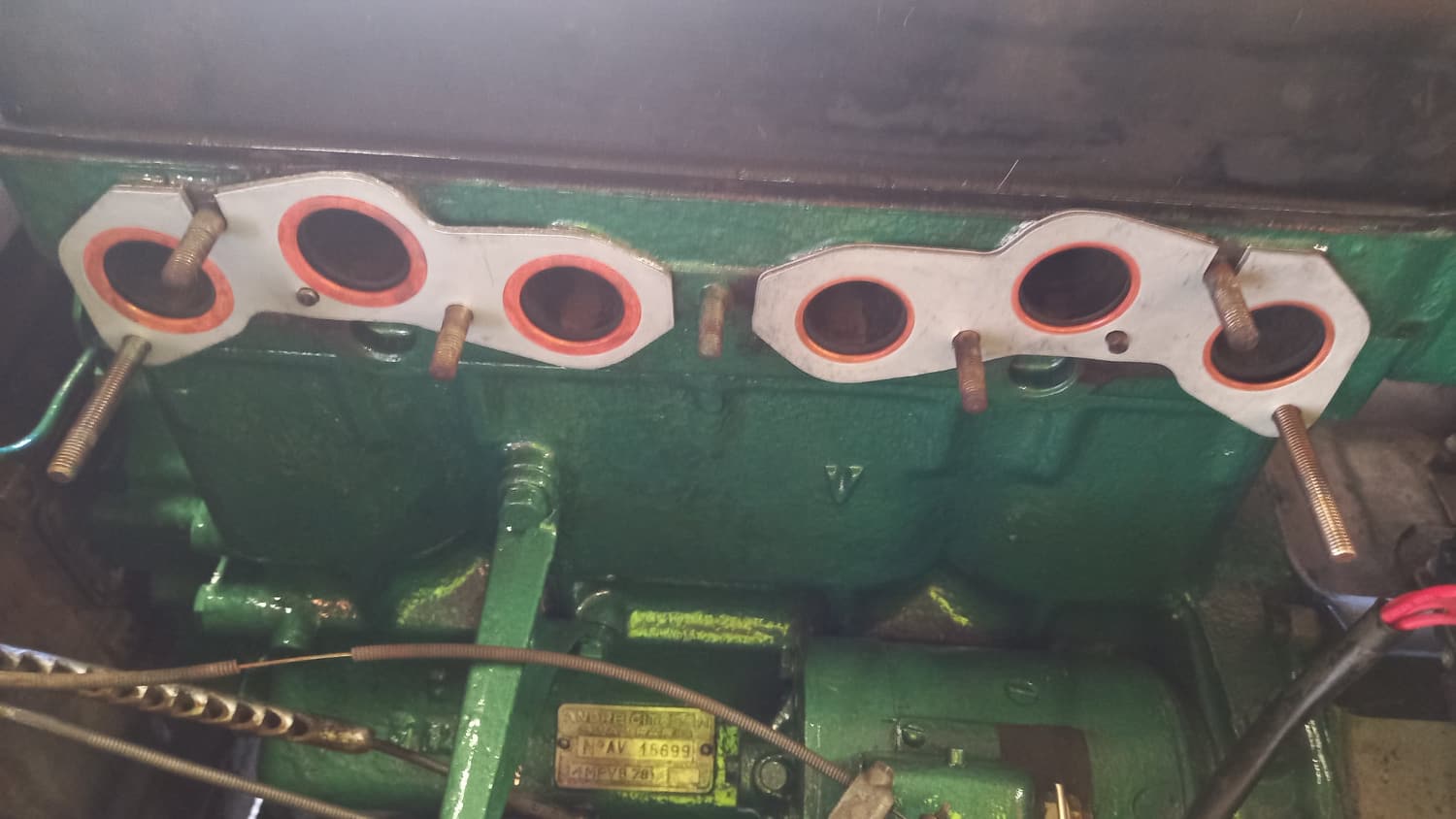 La première photo montre le collecteur d'échappement avec un nouveau jeu de boulons et d'écrous, ce qui est clairement visible sur la deuxième photo. Dans l'original, il y avait des vis classiques avec des têtes. Je pense que ce nouveau design est bien meilleur car si c'était le cas avant, le collecteur d'admission serait resté intact.
