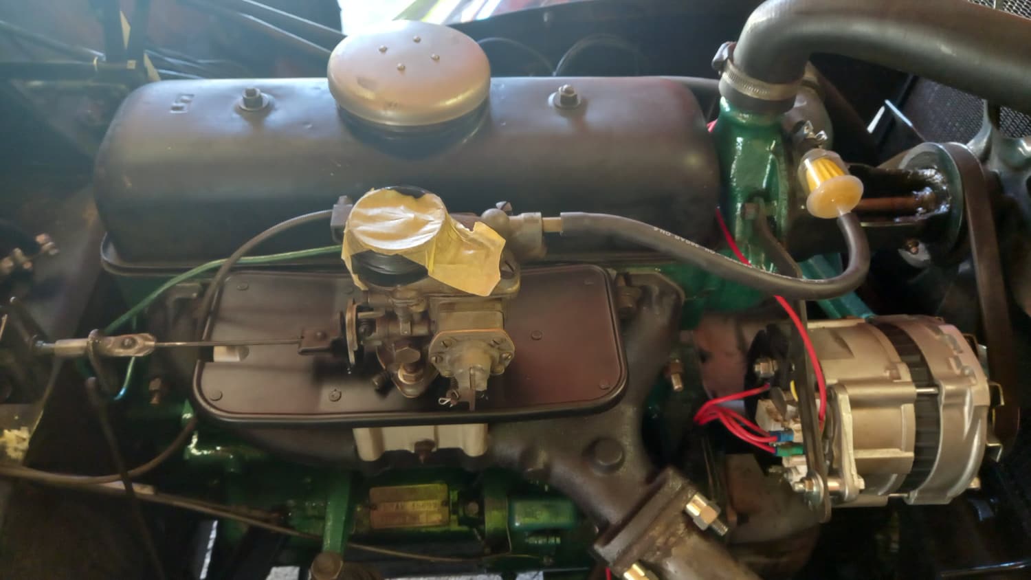 Sinon, je pensais sortir le moteur de la voiture pour le peindre, mais comme tout était sec à l'époque, pas de fuite, et que tout fonctionnait bien, j'ai préféré le laisser dans la voiture pour le moment.
