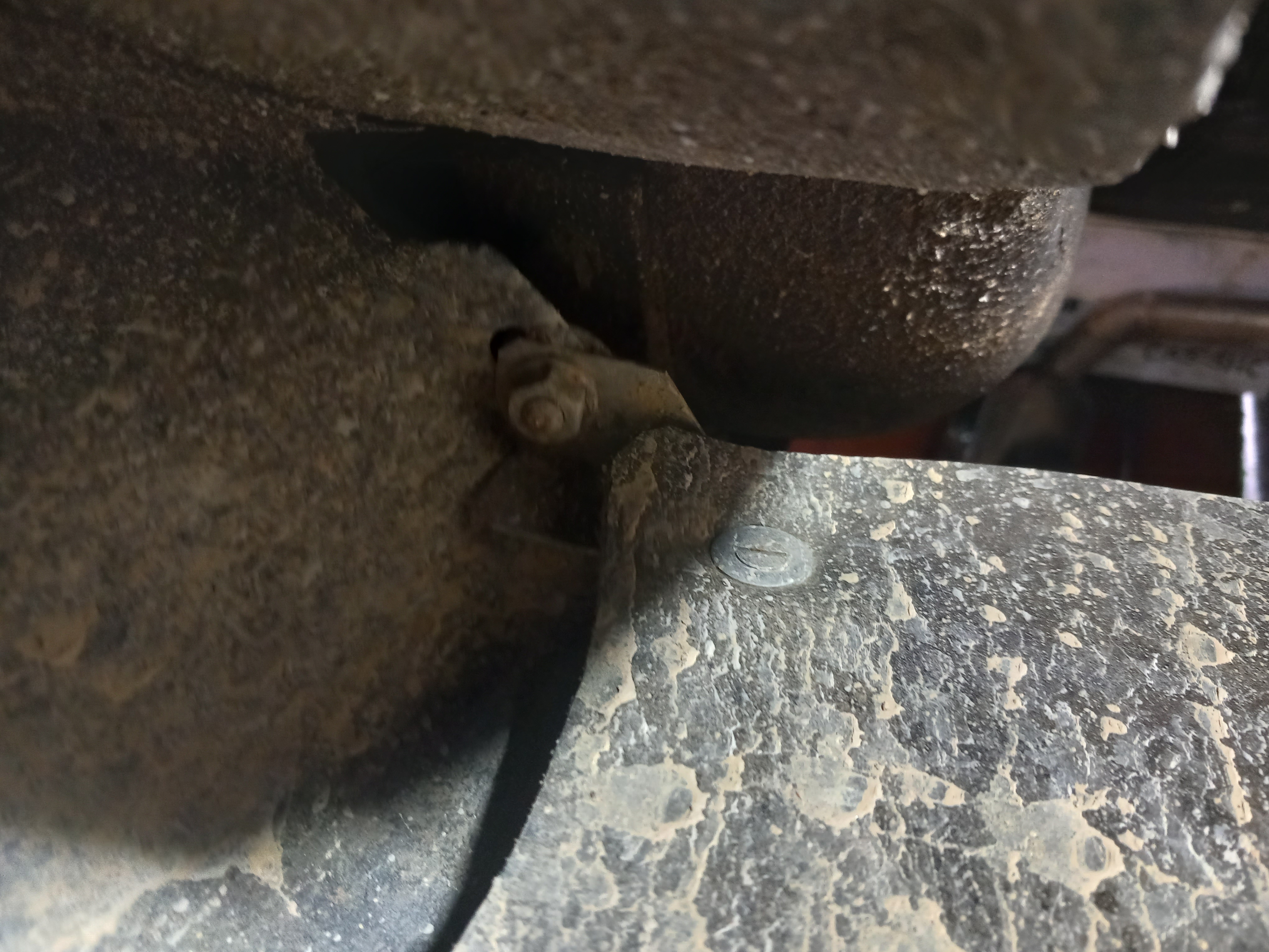 Il est fixé à l'intérieur du garde-boue (1ère photo - tourné de 90 degrés vers la gauche), et sur la 2ème photo, vous pouvez voir le support fixé au bord extérieur du garde-boue (j'ai remarqué qu'il manque la vis).