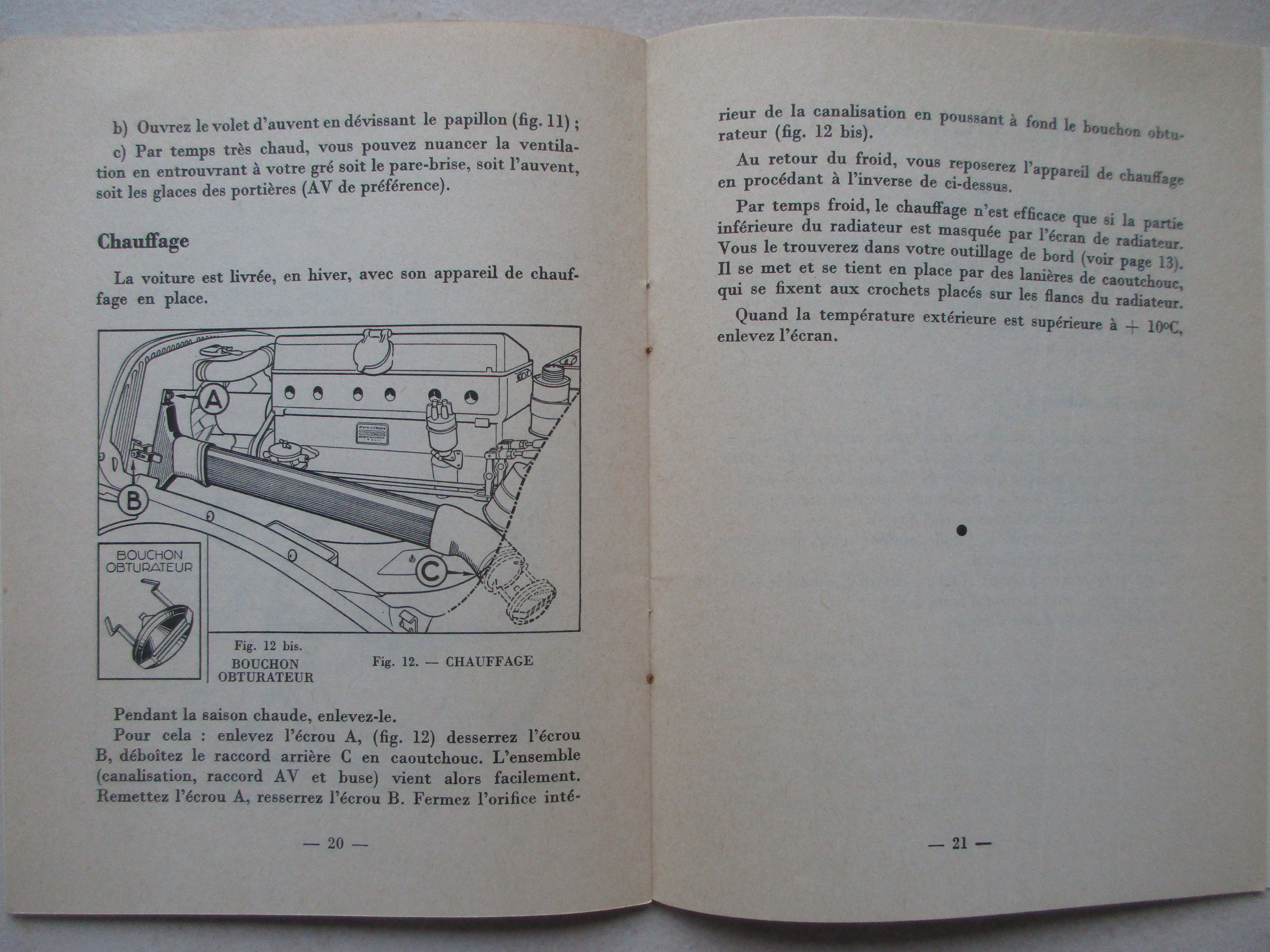 Dans la notice d'entretien de la 15 six, Citroën se préoccupait plus du confort des passagers que de la température moteur.