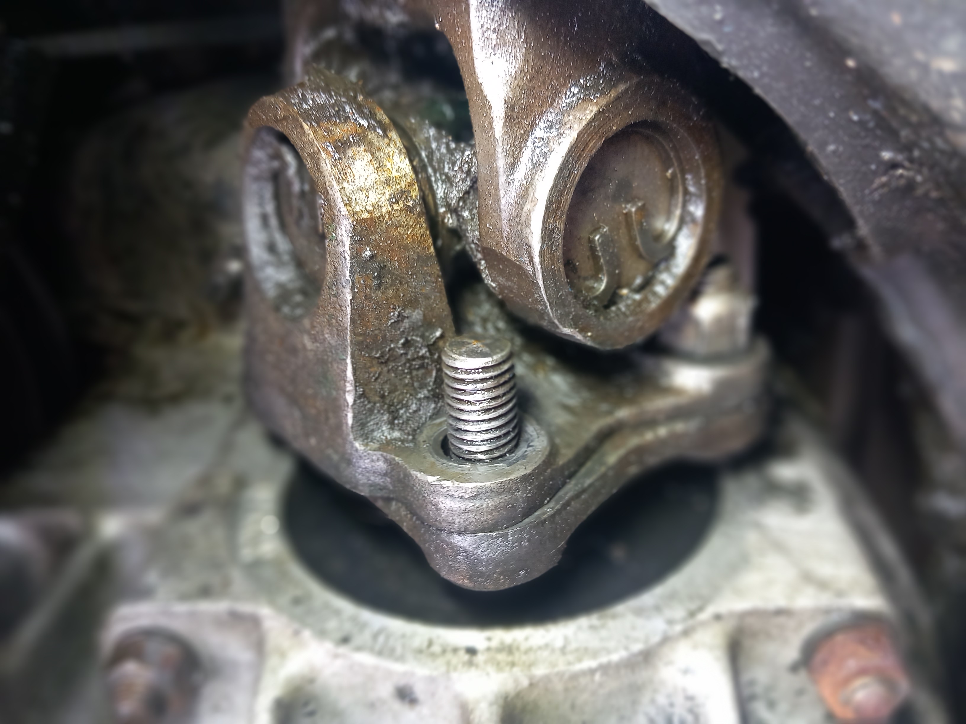 Autre chose; en regardant ta photo il me semble que la liaison entre la sortie de boite et le cardan du côté conducteur manque de serrage et peut être manque t il aussi les rondelles devant les écrous de serrage?