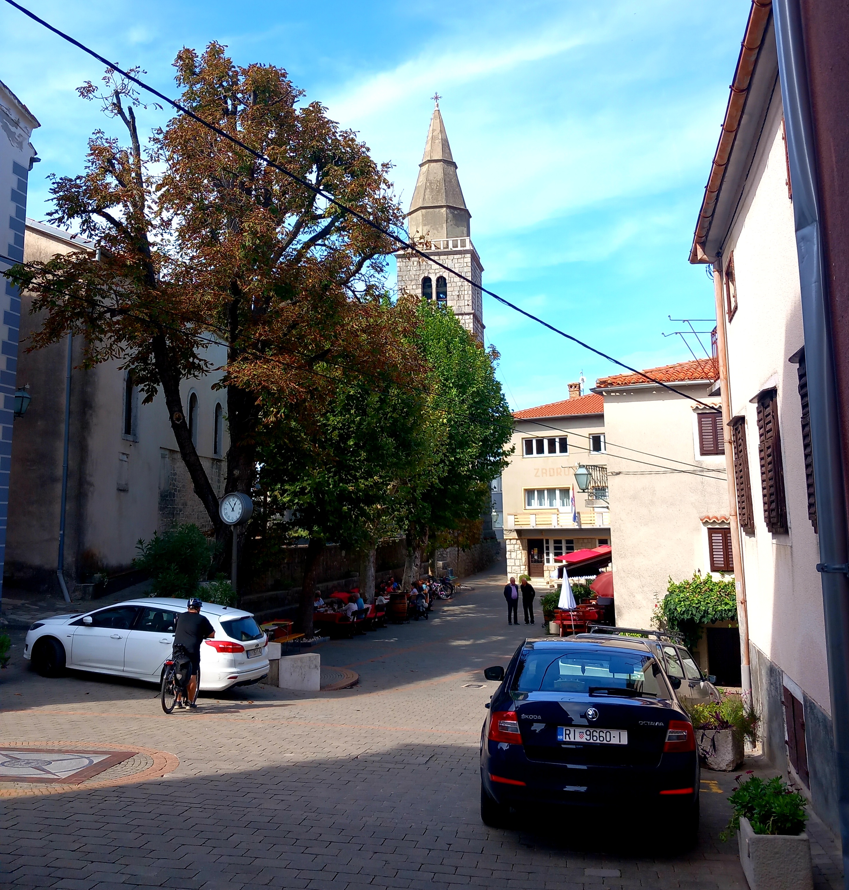 Malgré la fin du mois de septembre, j'ai eu la dernière place de parking. À en juger par le nombre de tables occupées de restaurants manifestement bons sur la place, c'est évidemment la raison pour laquelle tout était plein.