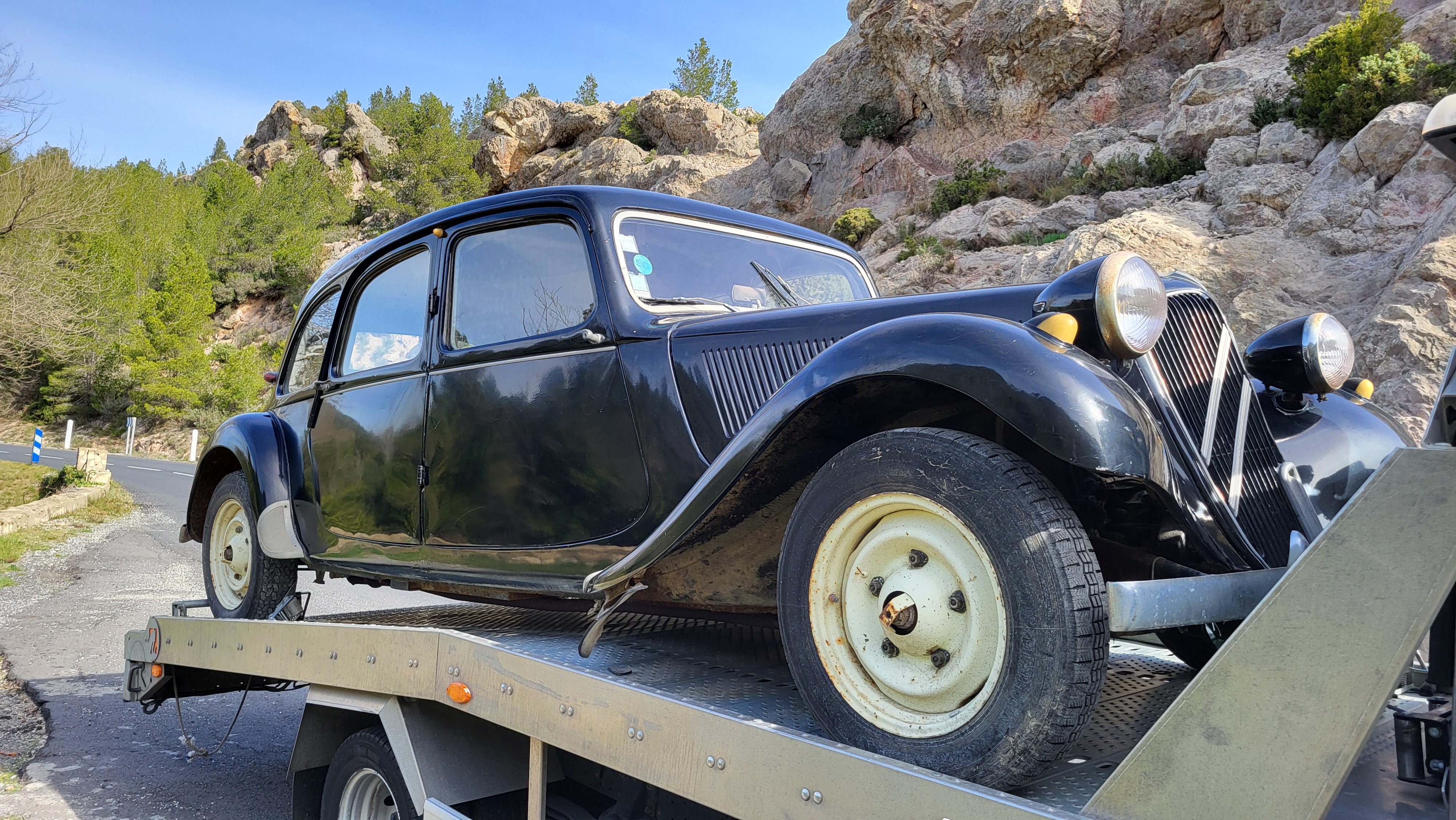 Et bien voilà après un transport sur plateau d'une centaine de kilomètres, la traction est enfin arrivée à la maison. Voici quelques photos...