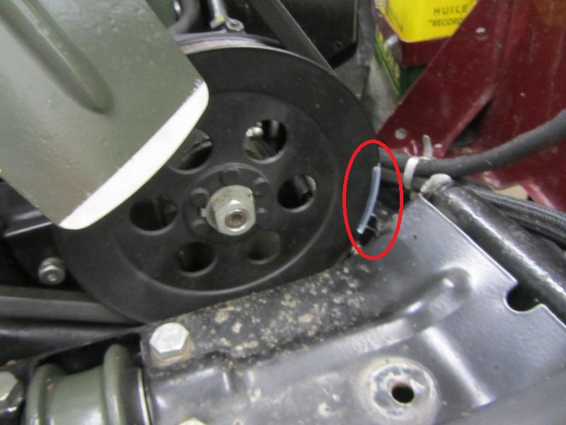 On peut voir sur l'image le jeu de la poulie d'entrainement, env. 30°