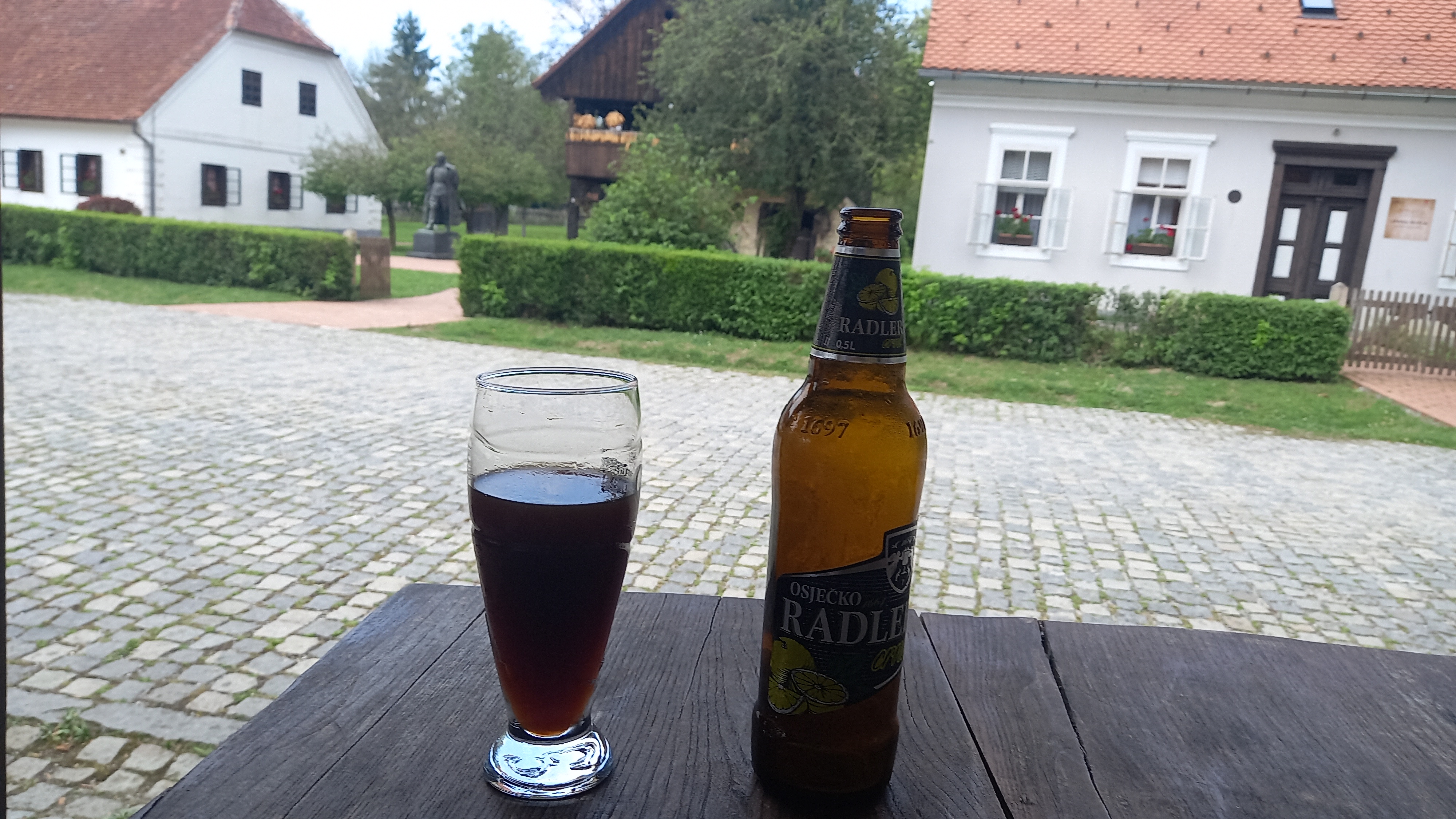 Moi, d'un autre côté, j'ai bu lentement un bon radler froid d'Osijek, tandis que l'ex-maréchal de bronze pensait encore à quelque chose en arrière-plan.