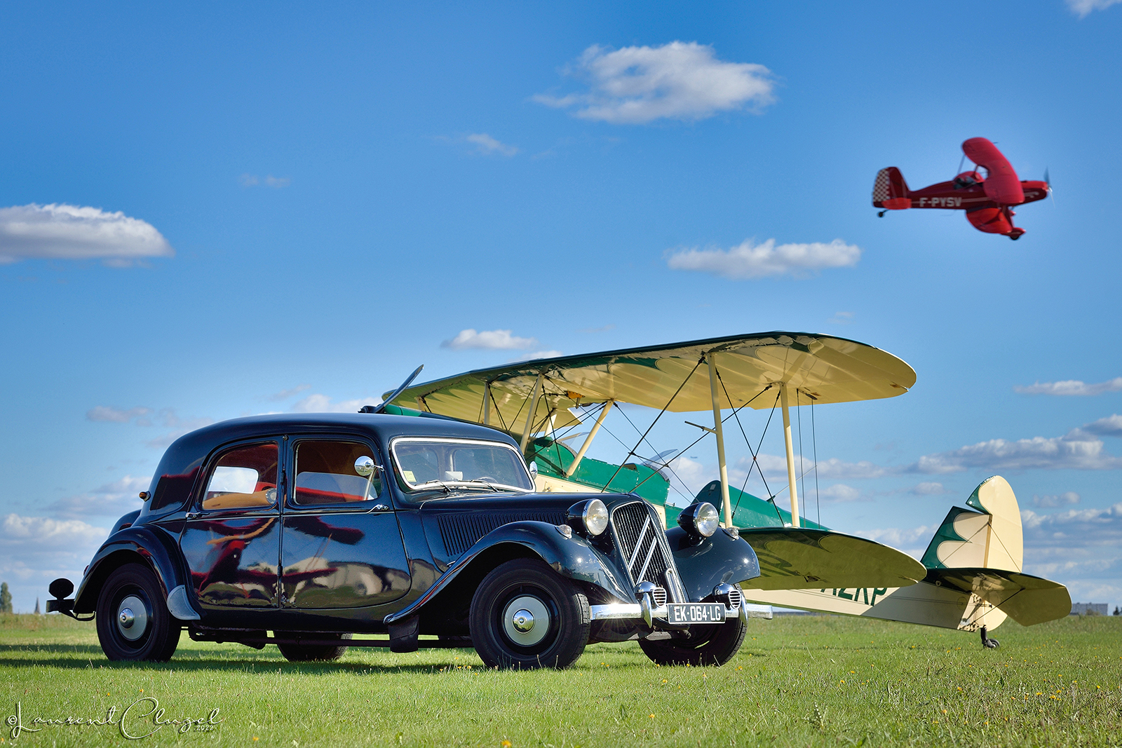 On attaque avec une belle journée de samedi dernier sur un petit aérodrome de l'Oise à l'occasion d'un rassemblement de biplans et de voitures anciennes :