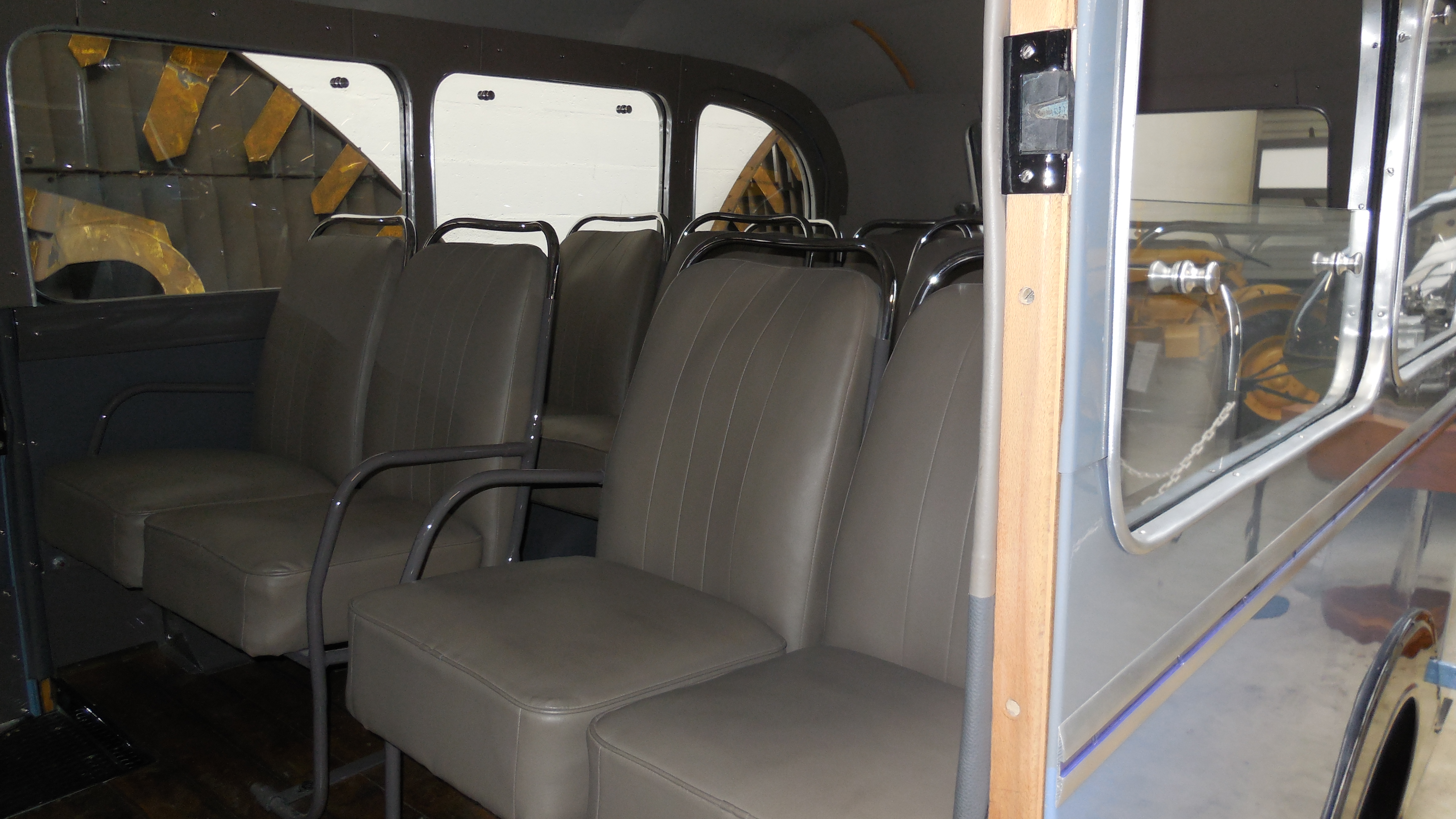 Le bus en question a été reconstruit à partir d'une épave complète, comme on peut le voir sur le panneau d'affichage avec des photos à côté.