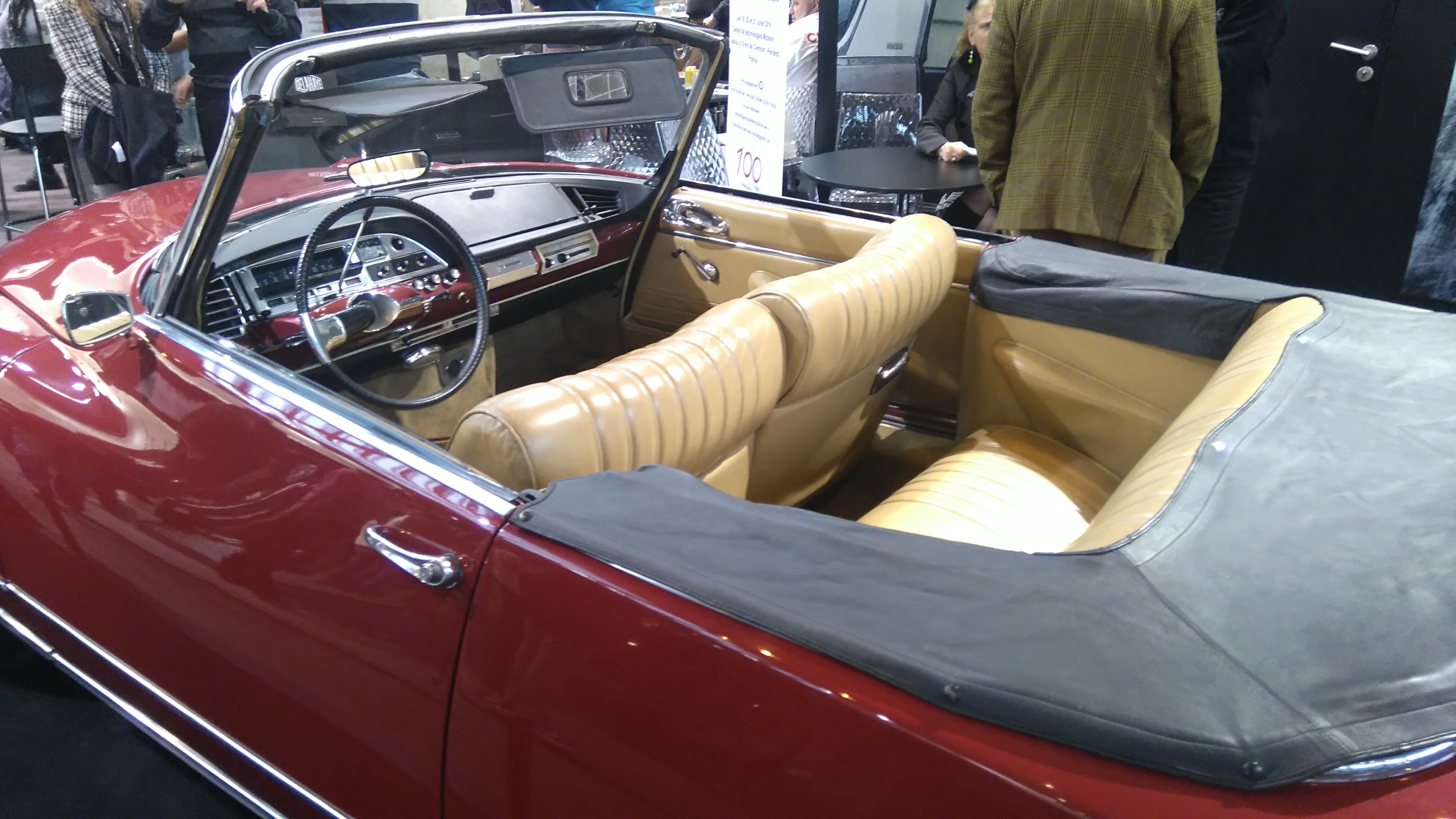 Bientôt, plutôt au début, je l'ai remarquée de loin et tout de suite. Une partie de la foire était visiblement encore en train d'être montée, et à l'extrême opposé du hall (la photo est spécifiquement agrandie), il y avait un cabriolet DS, peut-être même un Chapron original. C'était probablement un projet de rénovation.