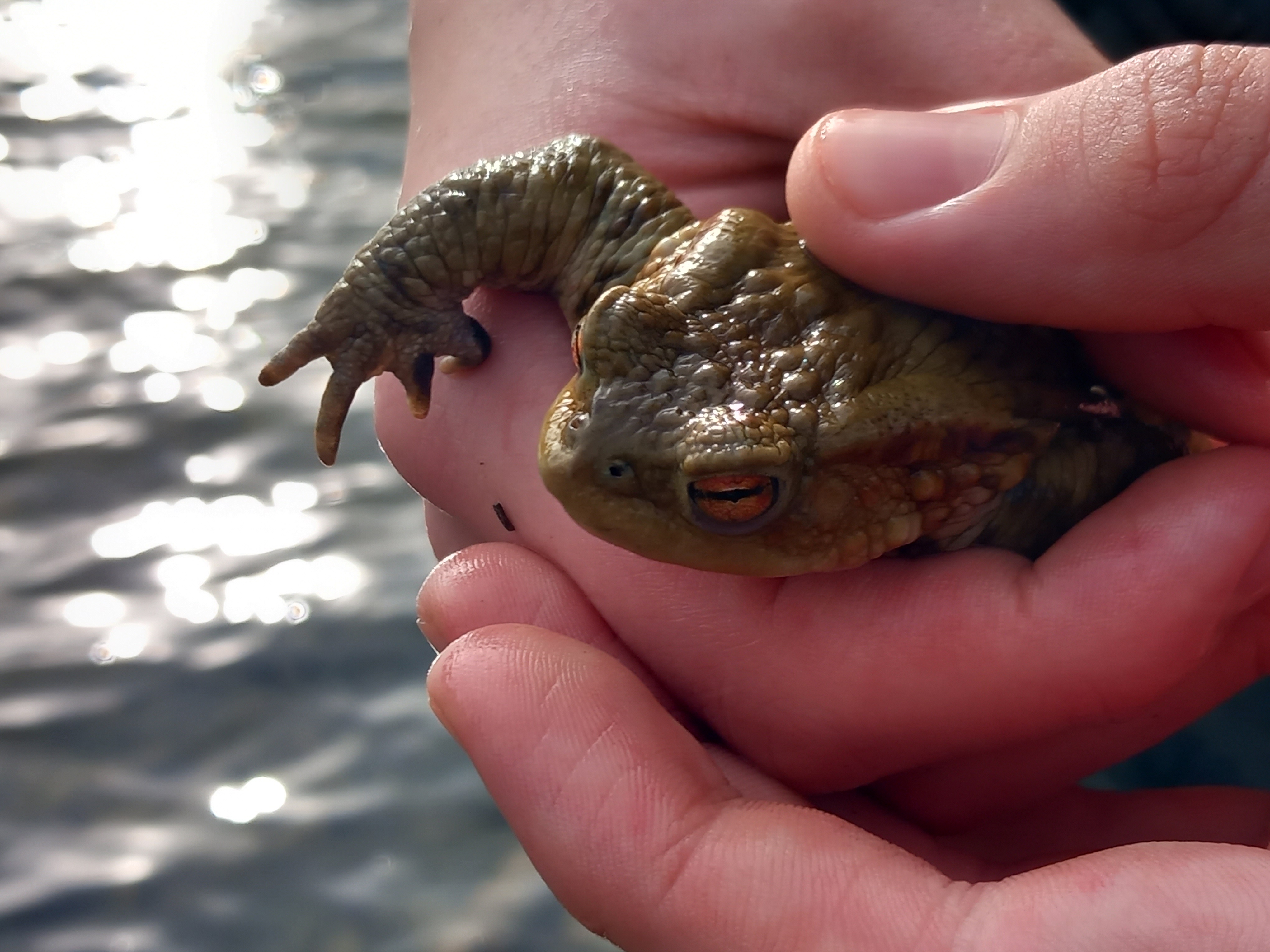 Des tapis d'Anemone nemorosa ont commencé à apparaître, des cygnes gambadaient sur la berge et pas mal de crapauds étaient déjà sous l'eau. Le fils en a également attrapé un, l'a caressé un peu et, bien sûr, l'a immédiatement remis à l'eau.