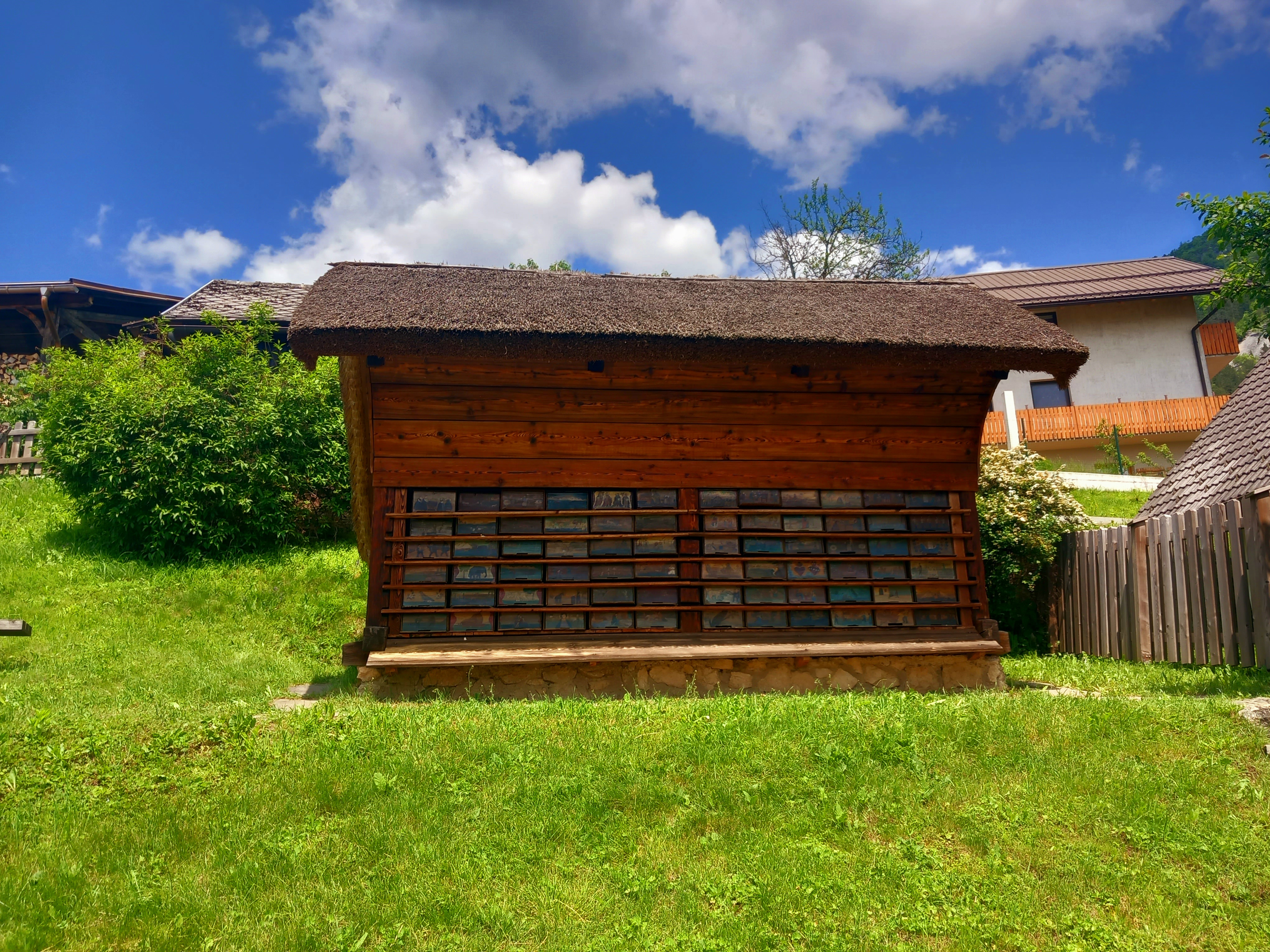 Une caractéristique du rucher sont les extrémités peintes des ruches, car Anton Janša était également un peintre de formation.