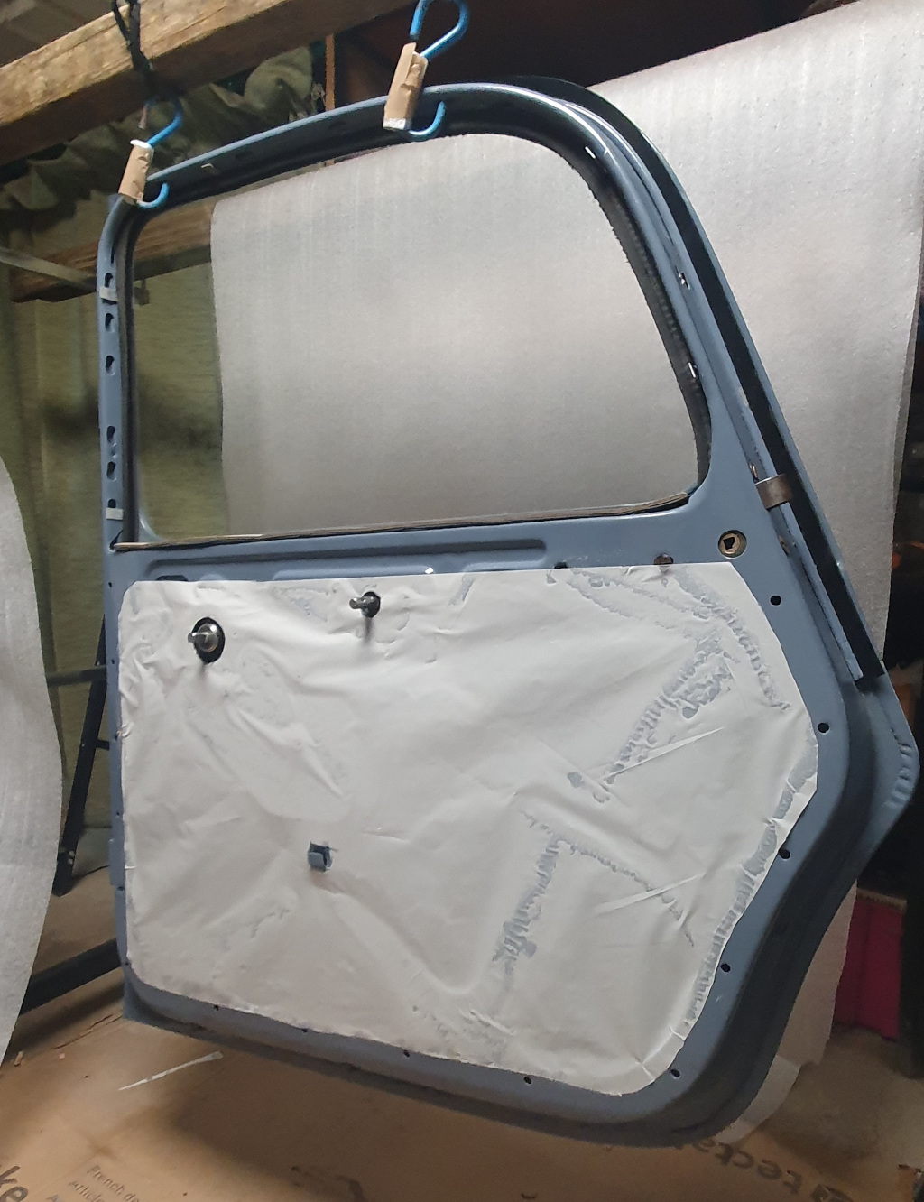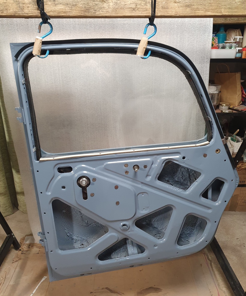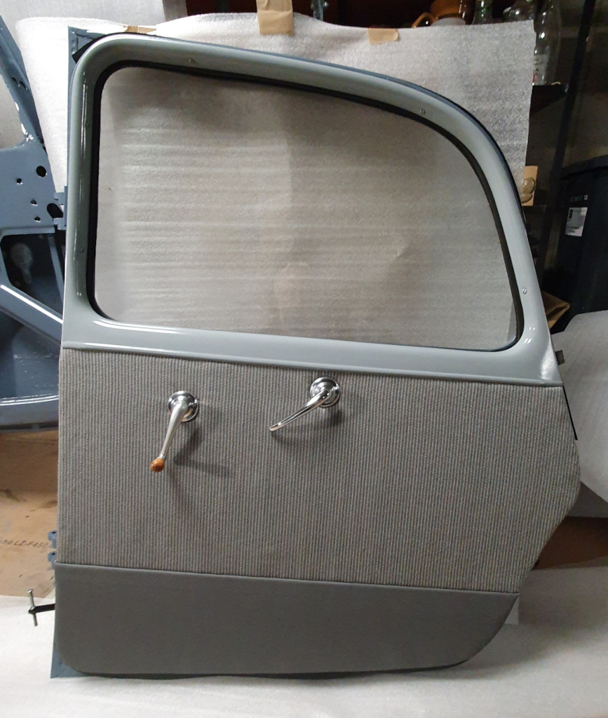 Le chantier suivant a été la partie sellerie et habillage interne, à commencer par les panneaux de portes entièrement refaits à neuf.