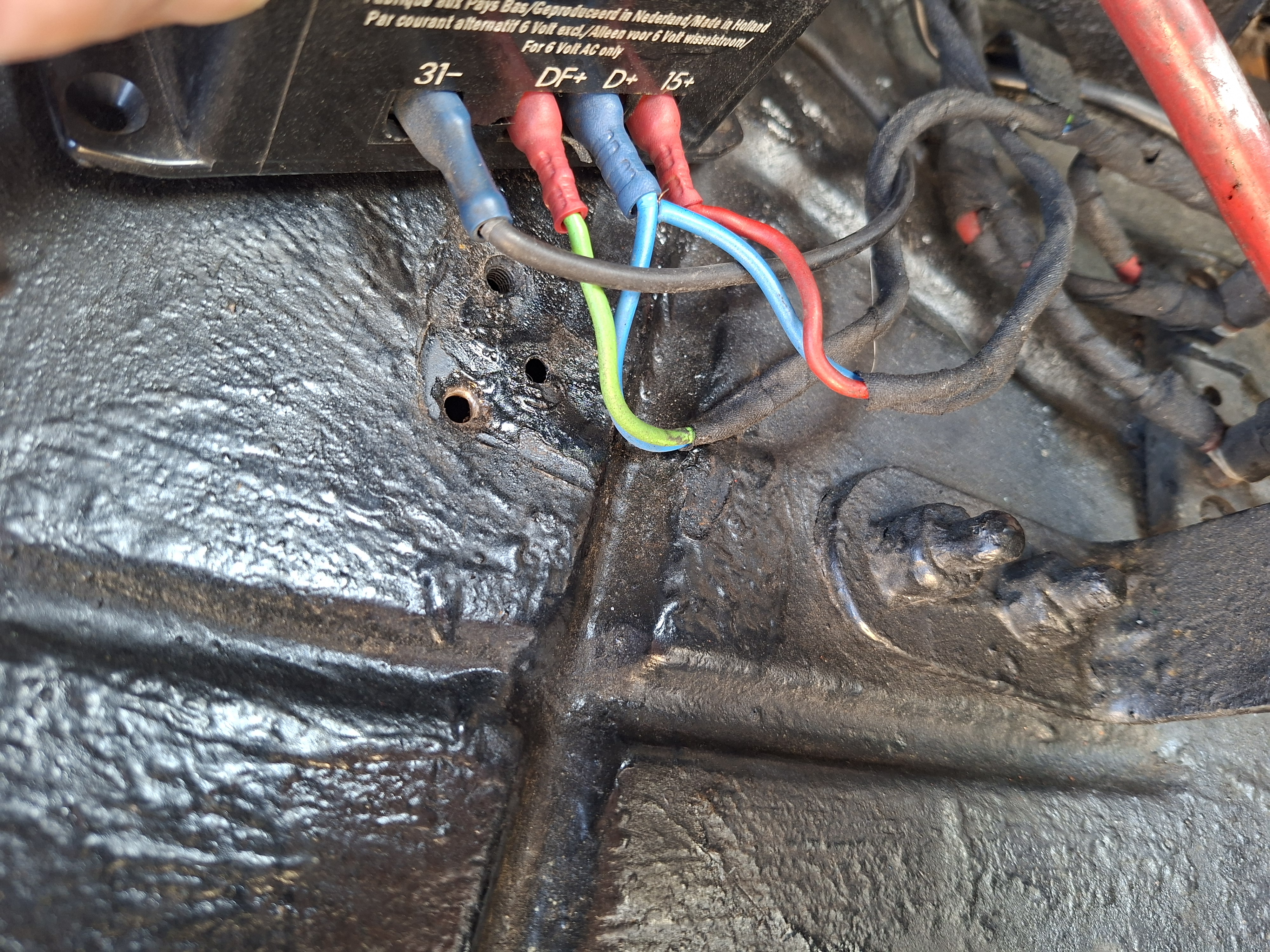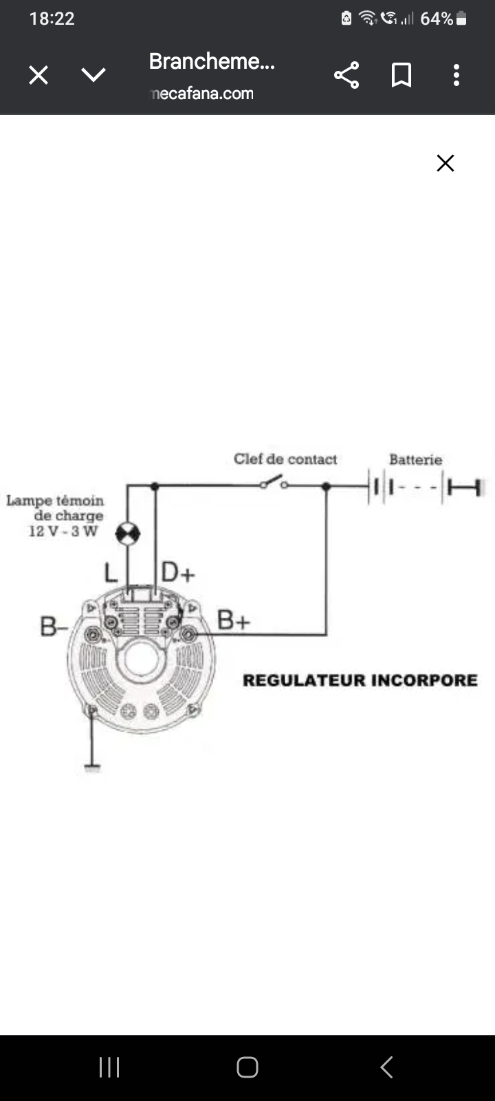 C'est sûr que ça ne peut pas fonctionner correctement avec tes branchements aventuriers. Tes explications sont trop courtes pour t’aider en toute sécurité. Ton tâtonnement sur divers branchements, risque de grillé l’alternateur, au pire grillé le faisceau. Visiblement tu as remplacé un alternateur à régulateur séparé par un alternateur à régulateur incorporé. Tu ne précises pas si cet alternateur à la bonne tension, 6 volts comme la tension d’origine. Pourquoi vouloir utiliser le régulateur séparé, il ne sert à rien avec ce nouveau type d’alternateur. Le plan de câblage n’est pas le même suivant le type d’alternateur. En principe ça ne passe pas par l’ampèremètre, sauf si le débit de l’alternateur est inférieur à 28 ampères. Je suis pour monter un voltmètre qui indiquera la tension de charge, ce qui permet de relier la borne + directement à la batterie. Bien sûr, le contact coupera l’excitation de l’alternateur à l'arret. Voir le plan de câblage, normalement livré avec l’alternateur, sinon, le demander au fournisseur.